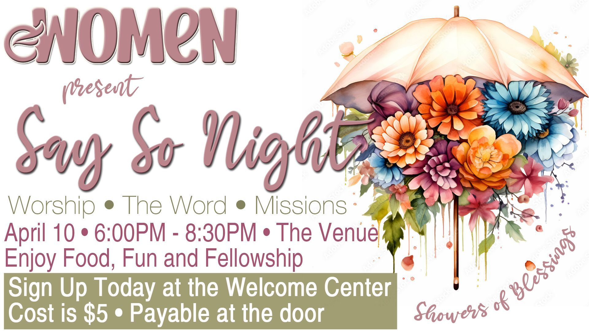 Sign up now at the Welcome Center for a night of Worship, The Word and Missions.